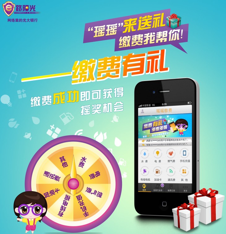 活动主题:“瑶瑶”来送礼,缴费我帮你!——缴费有礼
