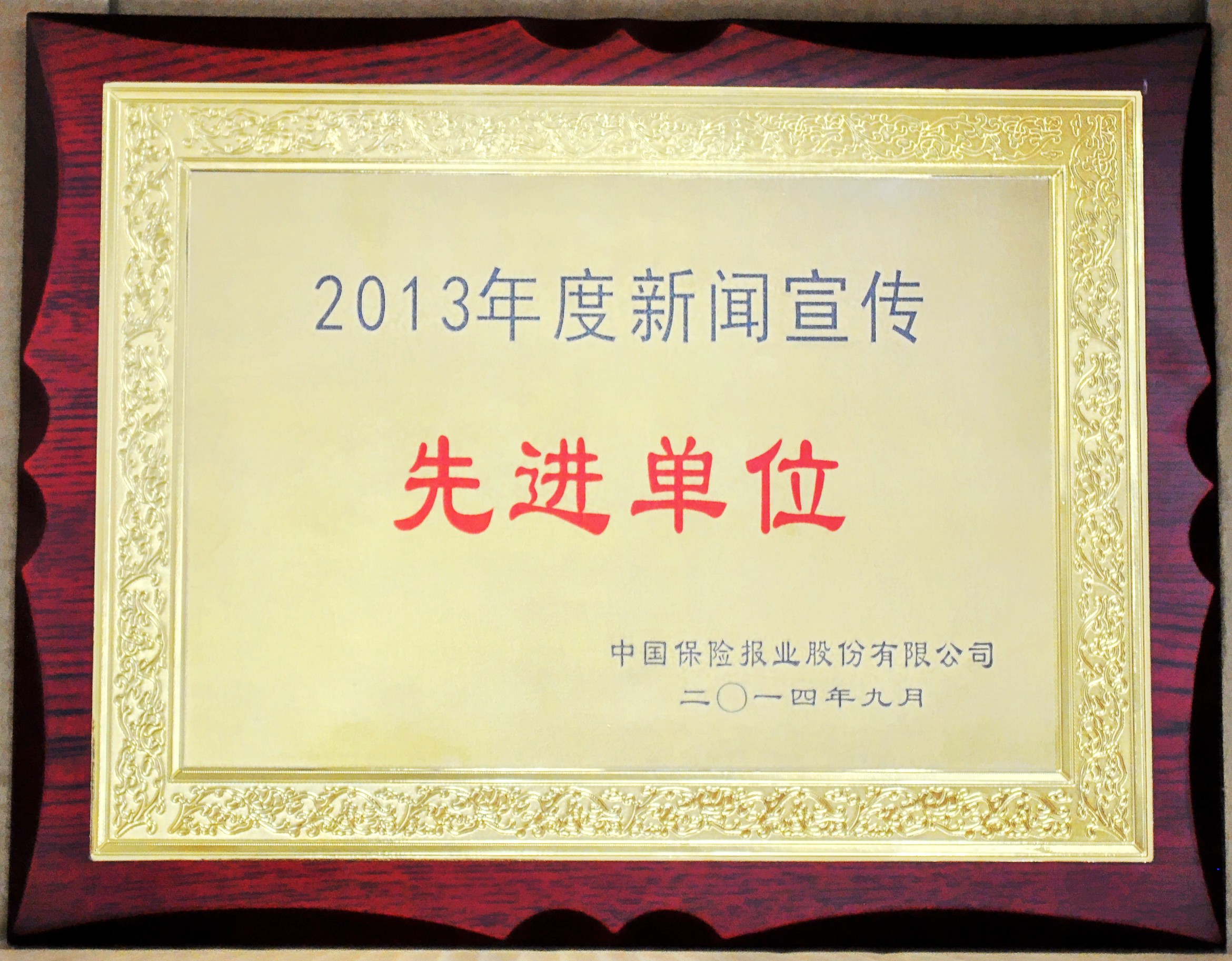 中荷人寿山东省分公司获评2013年度新闻宣传“先进单位”,近日,山东省分公司荣膺《中国保险报》评选的2013年度新闻宣传“先进单位”称号。分公司已连续3年获此殊荣。
