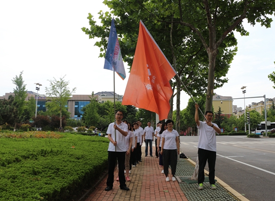 夏日的清晨,在日照市区主干道路上,有一道别样的风景线,泰康人寿日照中支伙伴们高举彩旗,精神抖擞地阔步行进着。一行行整齐的队伍、一声声嘹亮的口号,引来市民驻足观看和喝彩。尽管迎面的风似热浪扑来,伙伴们满脸通红、大汗淋漓,但依然互相鼓励着,一个都不能少,决不掉队。“身体健康一小步,保险扶贫一大步”,是大家共同的信念;将一步步脚印转化成一份份公益的力量,向贫困人口捐赠保险保障,是大家共同的目标。